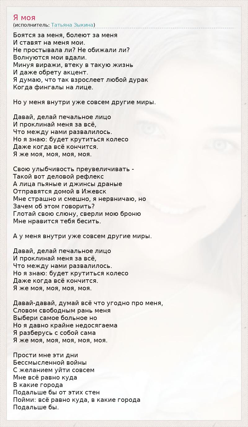 Это интересно:Татьяна Зыкина родилась в Ижевске 20 апреля 1981 году. Работала журналистом, теле- и радио-ведущей. Песни начала сочинять в... продолжение