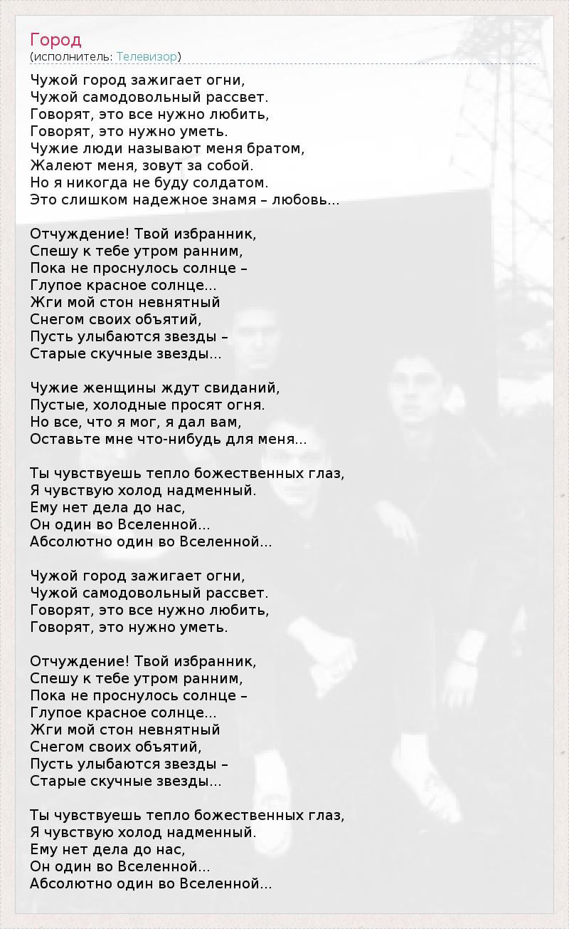Это интересно:Группа "Телевизор" образовалась в Ленинграде в 1984 году на обломках арт-роковой группы "Озеро" и дебютировала сразу на 2 фестивале Ленинградского Рок-клуба 1984 года, войдя в число лауреатов, причем лидер группы, студент английского отделения филфака Ленинградского ГосУниверситета Михаил Борзыкин был отдельно отмечен как автор лучших текстов. Столь же успешно выступил "Телевизор"... продолжение