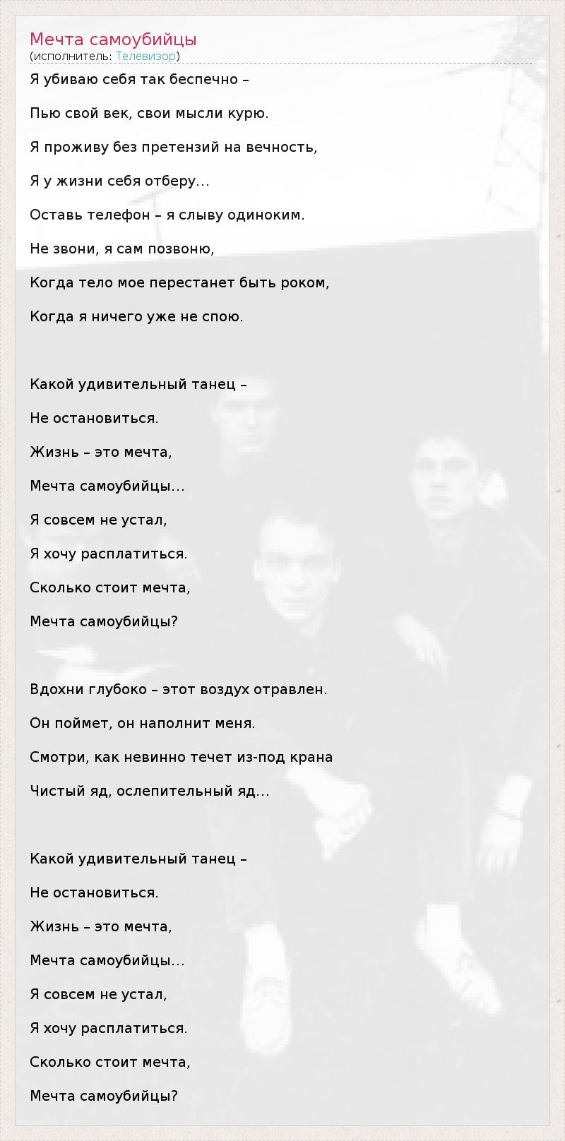 ГлавнаяИсполнителиТелевизорМечта самоубийцы