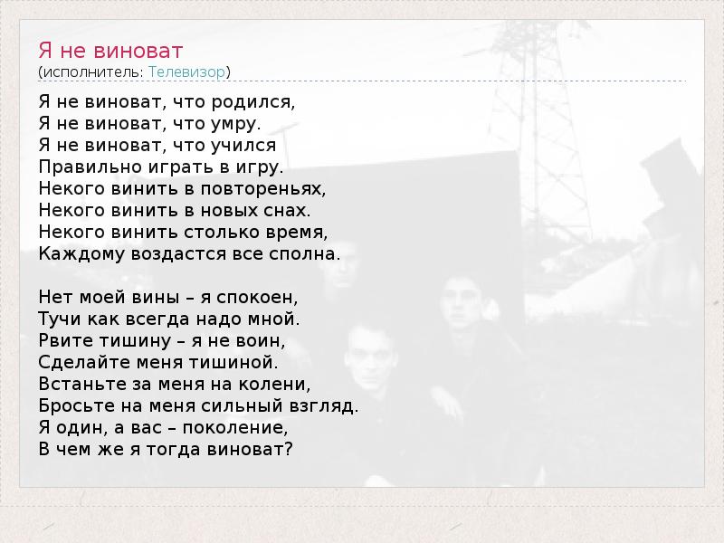 А как ты думаешь, о чем песня "Я не виноват" ?