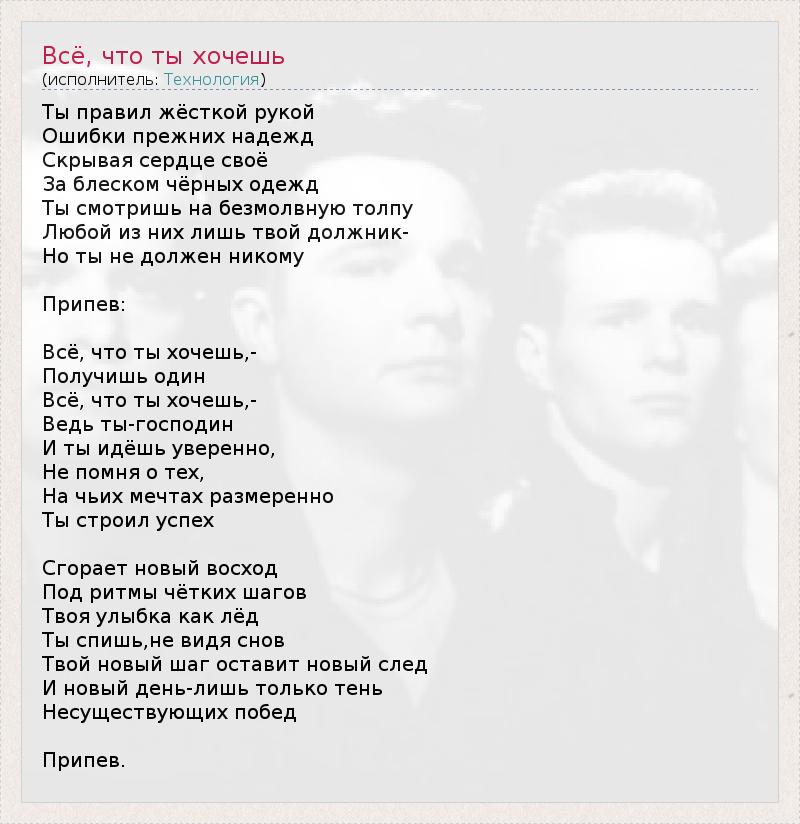 ГлавнаяИсполнителиТехнологияВсё, что ты хочешь