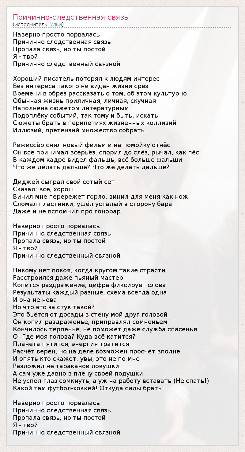 ГлавнаяИсполнителиУльиПричинно-следственная связь