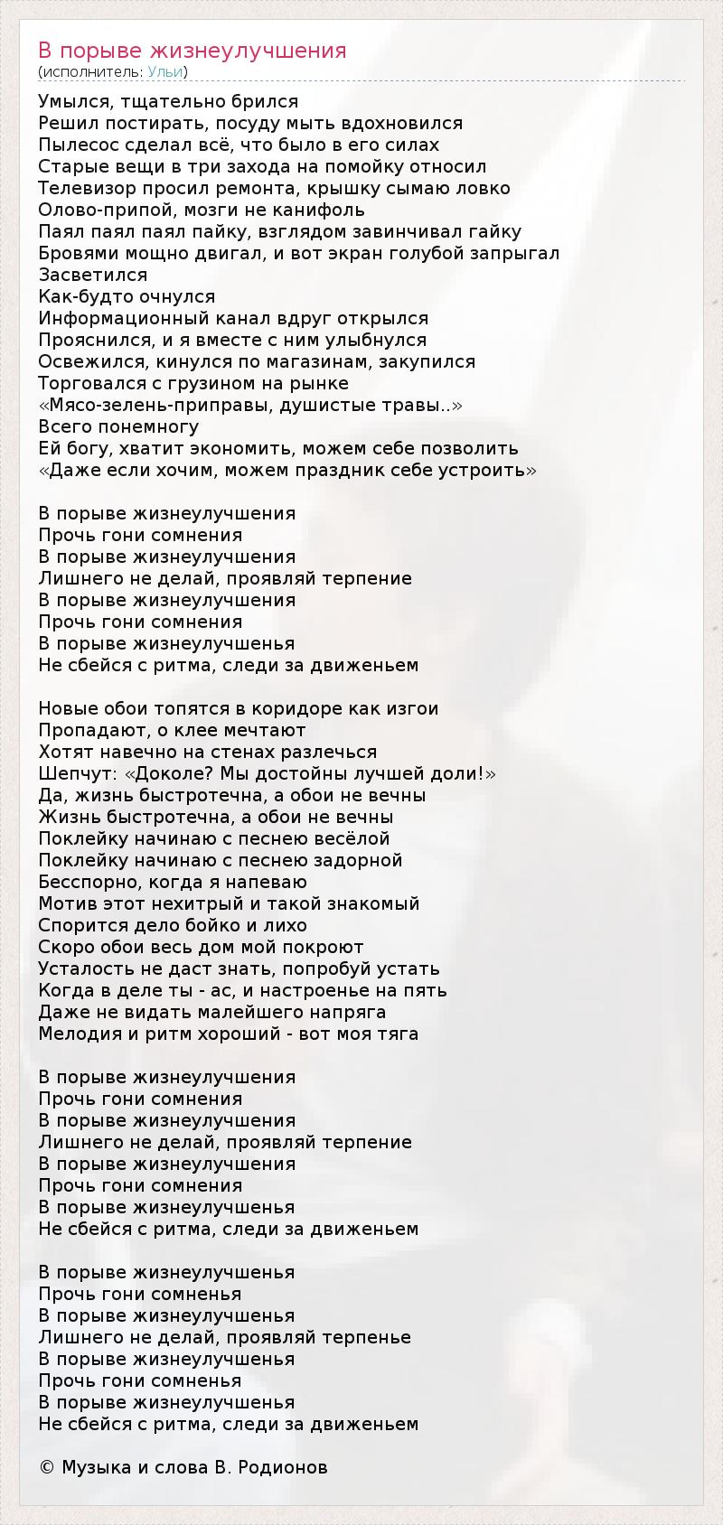 ГлавнаяИсполнителиУльиВ порыве жизнеулучшения