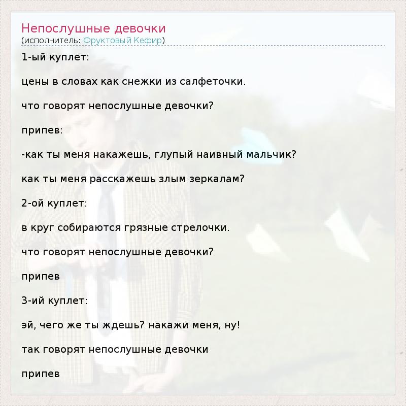 ГлавнаяИсполнителиФруктовый КефирНепослушные девочки
