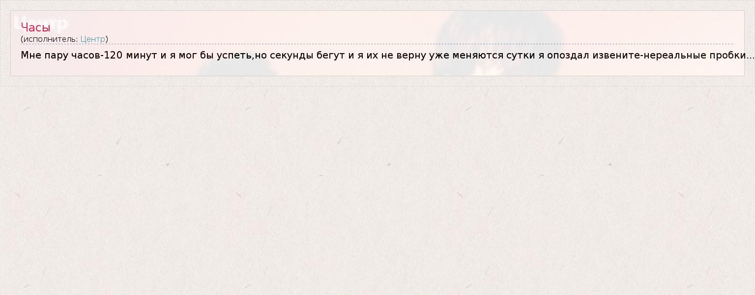 Мне пару часов-120 минут и я мог бы успеть,но секунды бегут и я их не верну уже меняются сутки я опоздал извените-нереальные пробки...
