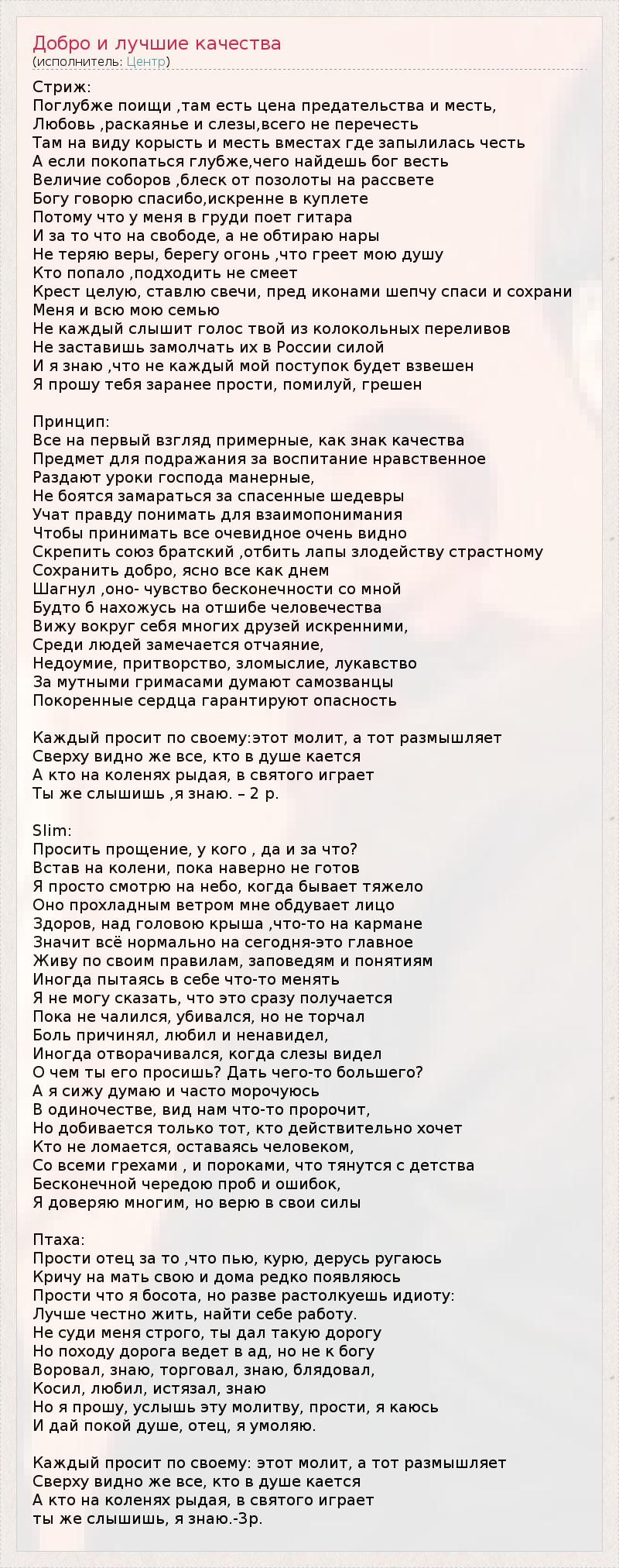ГлавнаяИсполнителиЦентрДобро и лучшие качества
