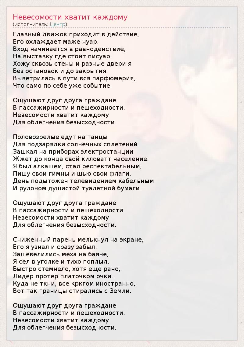А как ты думаешь, о чем песня "Невесомости хватит каждому" ?