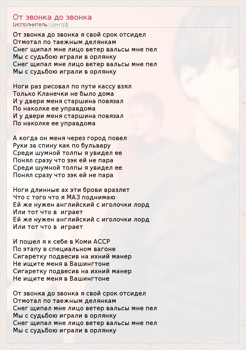 А как ты думаешь, о чем песня "От звонка до звонка" ?