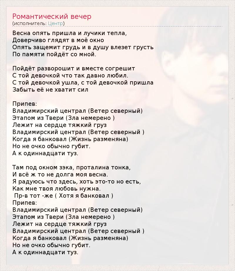 А как ты думаешь, о чем песня "Романтический вечер" ?