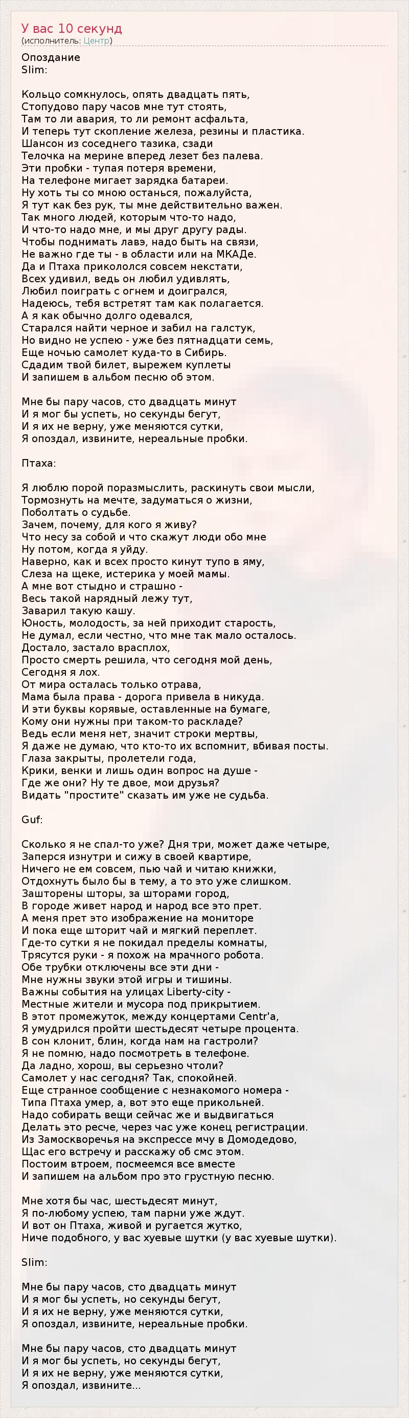 ГлавнаяИсполнителиЦентрУ вас 10 секунд