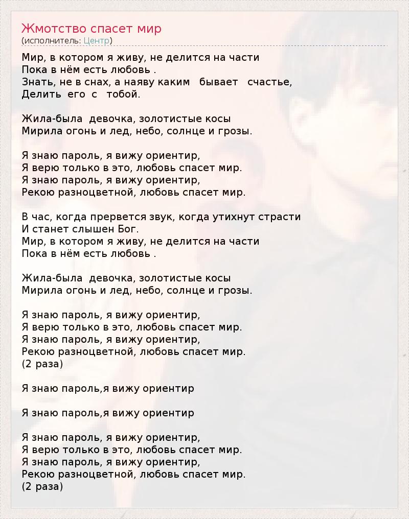 ГлавнаяИсполнителиЦентрЖмотство спасет мир
