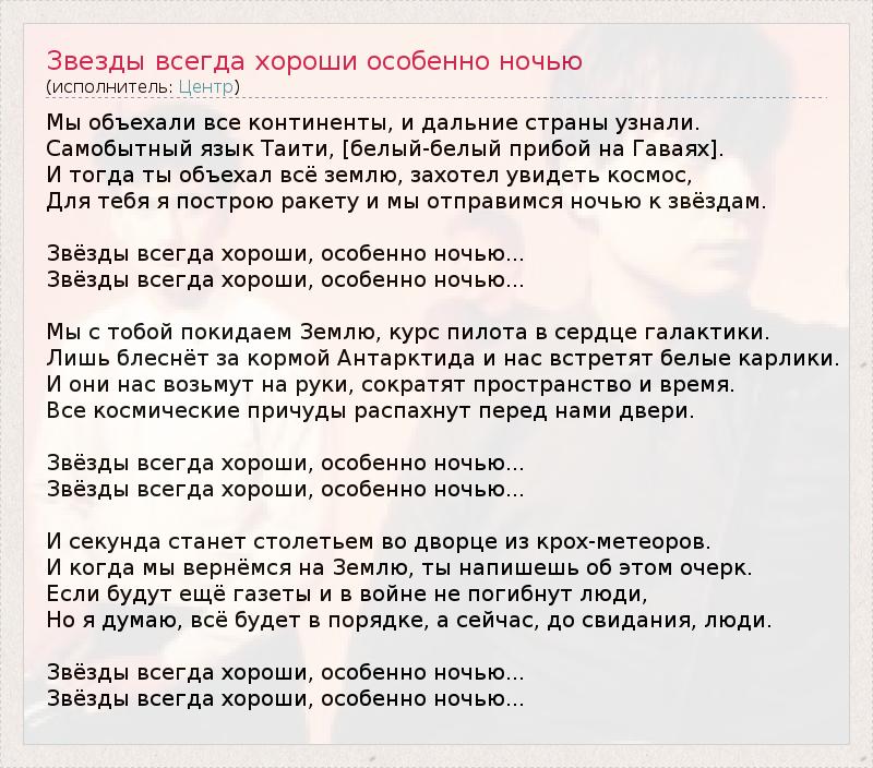 ГлавнаяИсполнителиЦентрЗвезды всегда хороши особенно ночью