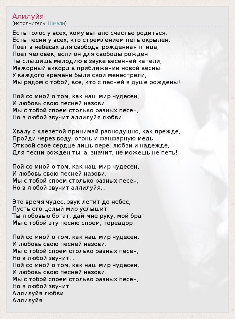А как ты думаешь, о чем песня "Алилуйя" ?