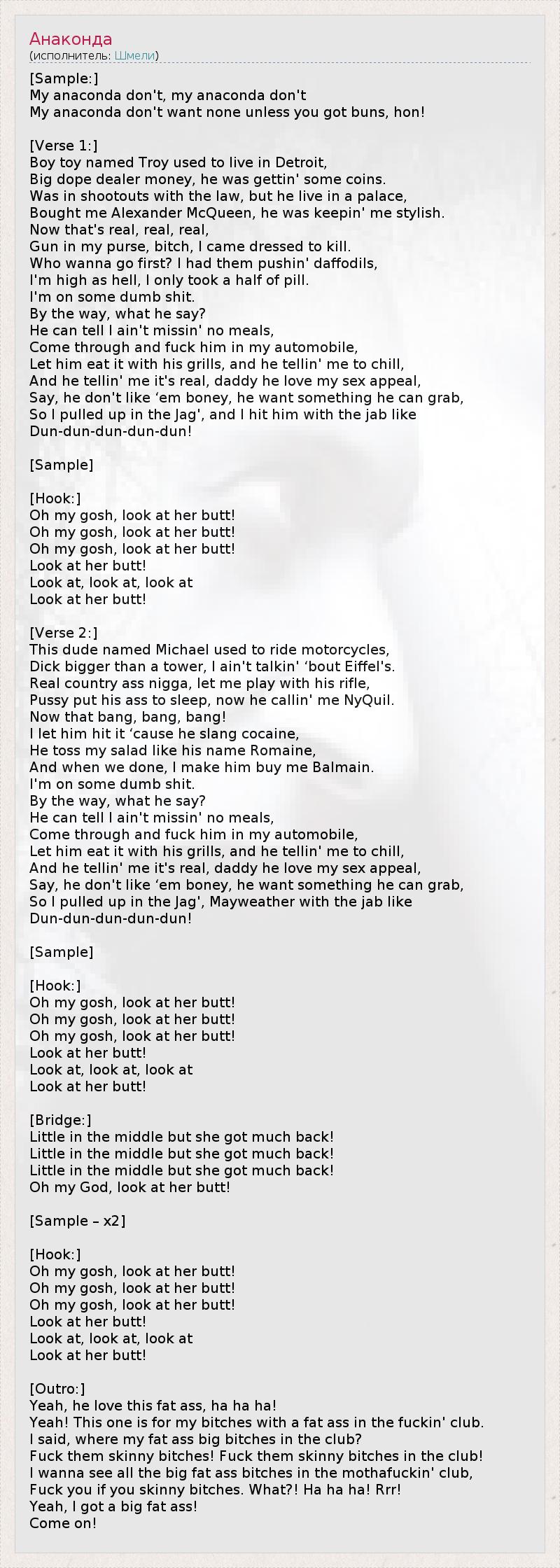 А как ты думаешь, о чем песня "Анаконда" ?