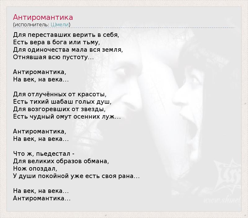 ГлавнаяИсполнителиШмелиАнтиромантика