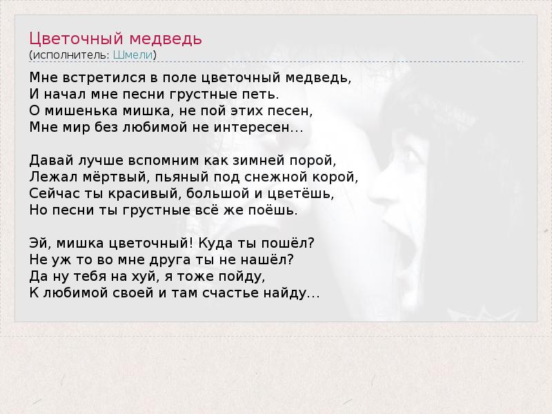 А как ты думаешь, о чем песня "Цветочный медведь" ?