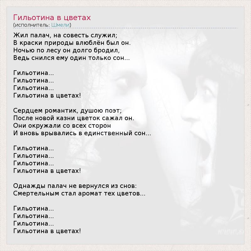 А как ты думаешь, о чем песня "Гильотина в цветах" ?