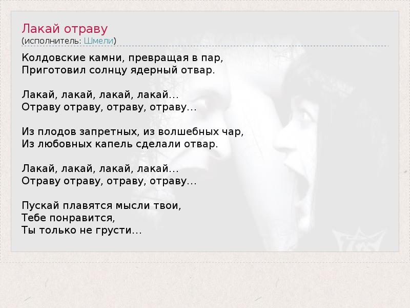 А как ты думаешь, о чем песня "Лакай отраву" ?