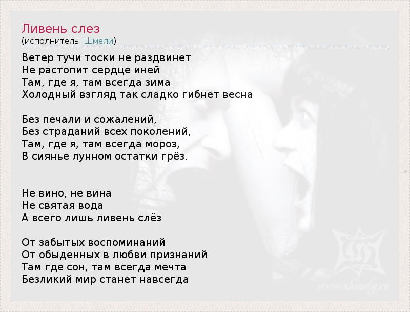 А как ты думаешь, о чем песня "Ливень слез" ?