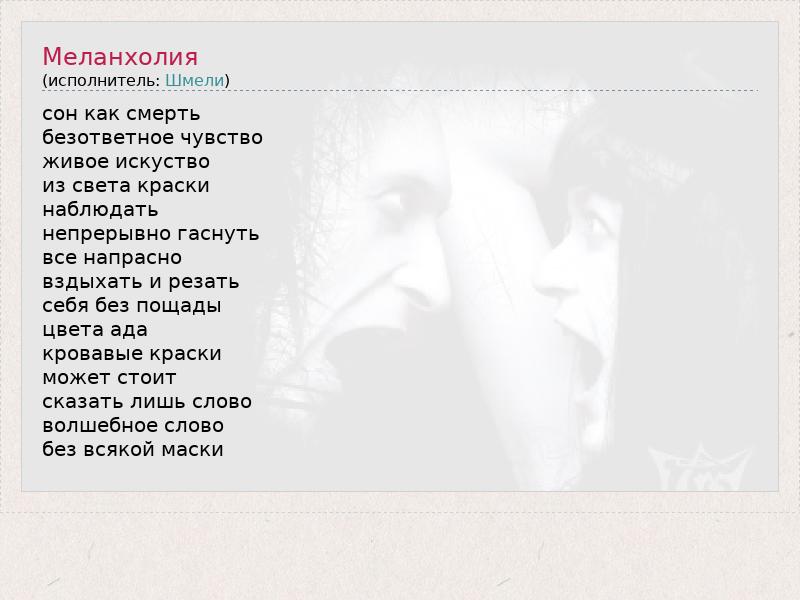 А как ты думаешь, о чем песня "Меланхолия" ?