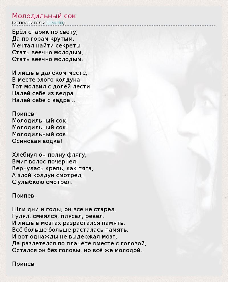 ГлавнаяИсполнителиШмелиМолодильный сок