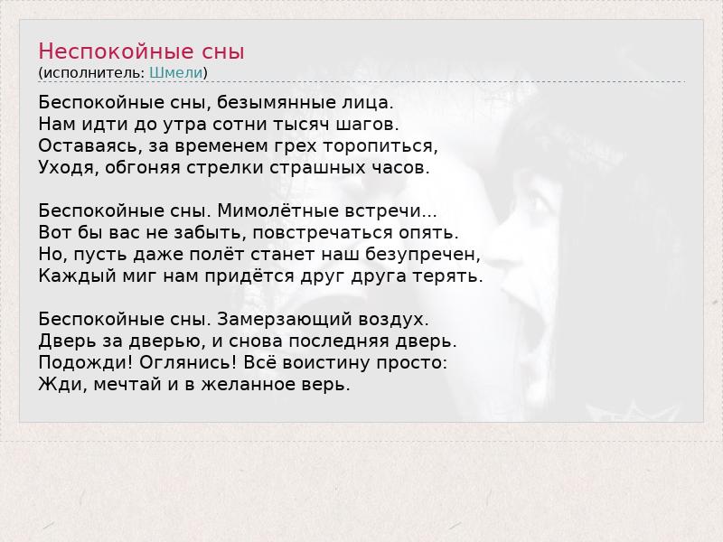 А как ты думаешь, о чем песня "Неспокойные сны" ?