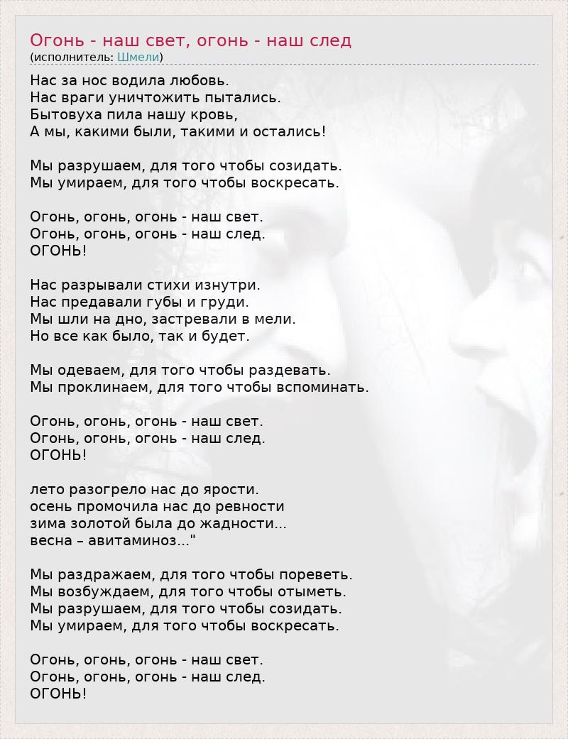 ГлавнаяИсполнителиШмелиОгонь - наш свет, огонь - наш след