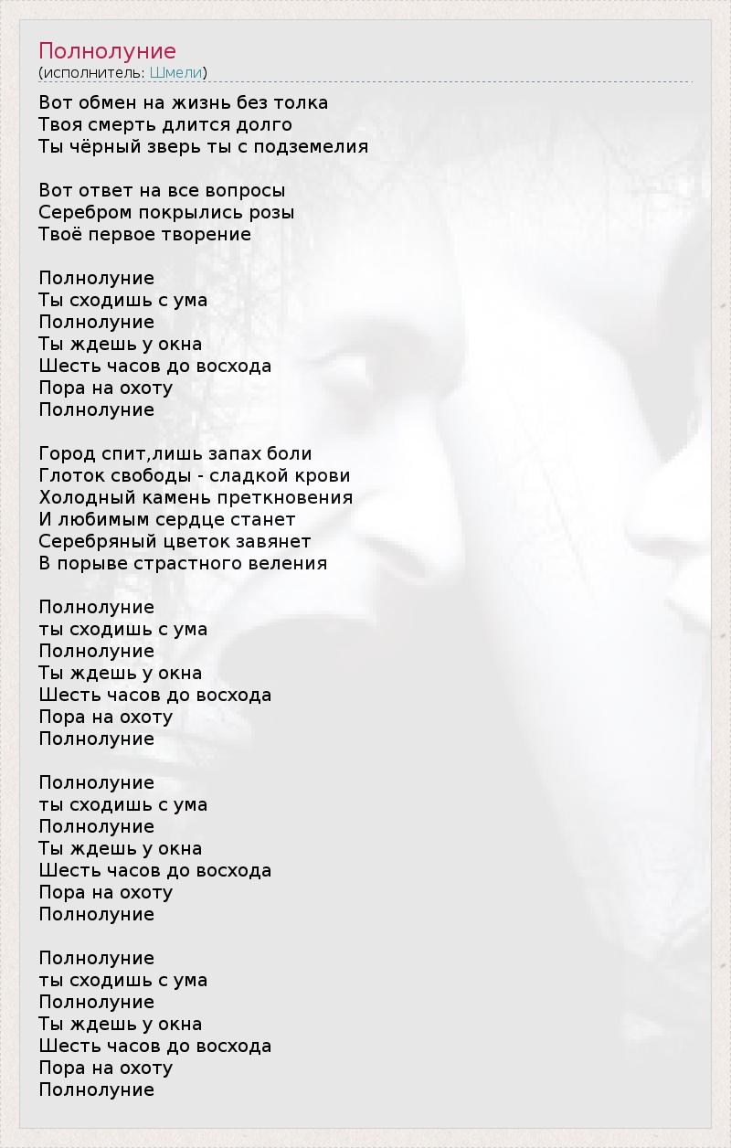 А как ты думаешь, о чем песня "Полнолуние" ?