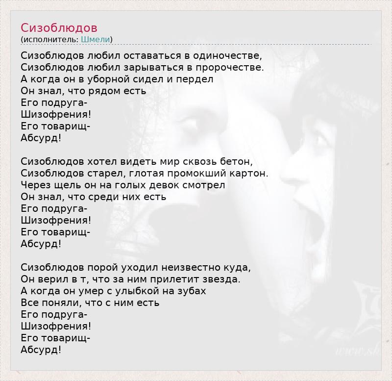 А как ты думаешь, о чем песня "Сизоблюдов" ?