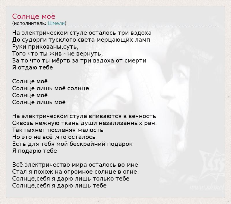 А как ты думаешь, о чем песня "Солнце моё" ?