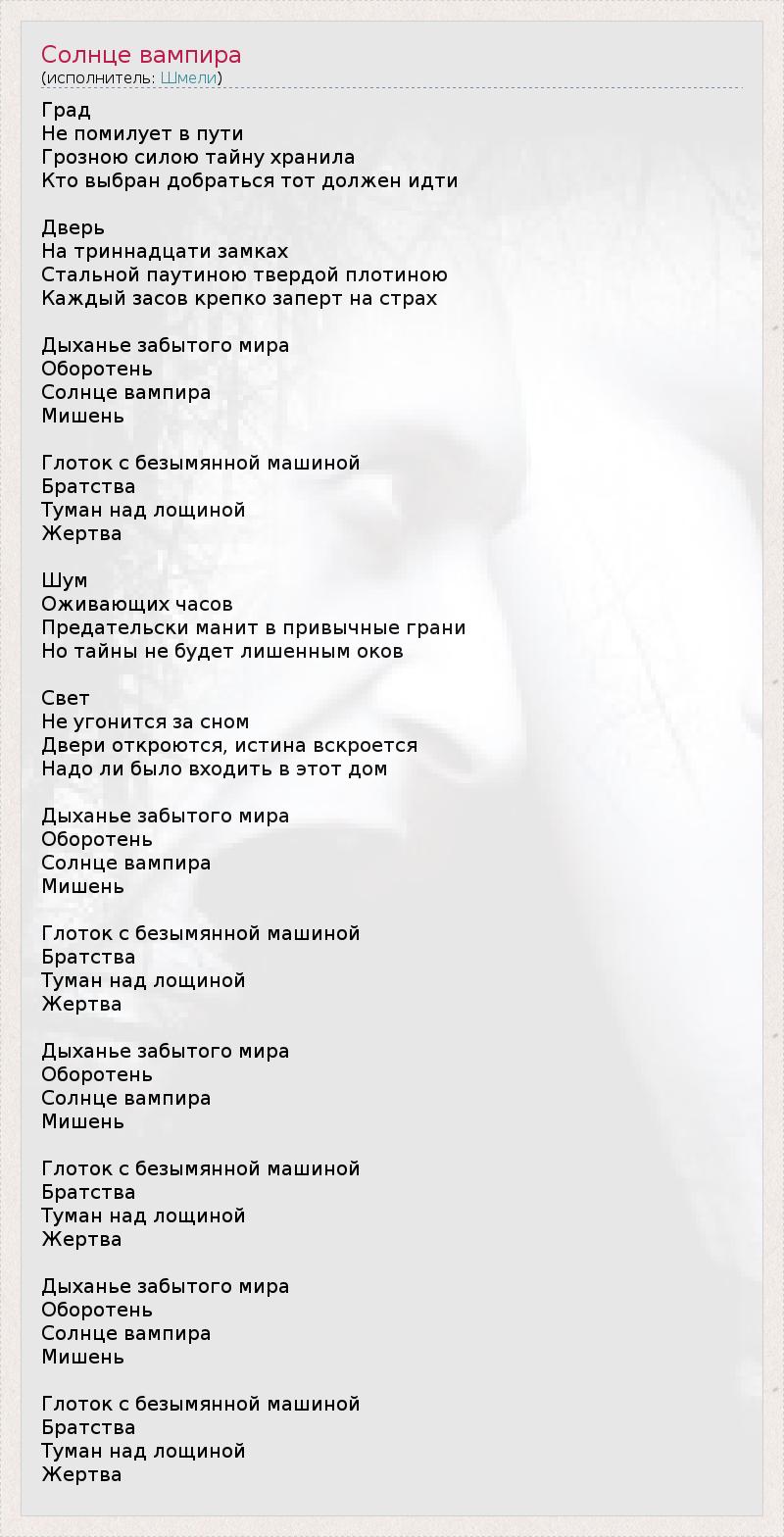 А как ты думаешь, о чем песня "Солнце вампира" ?