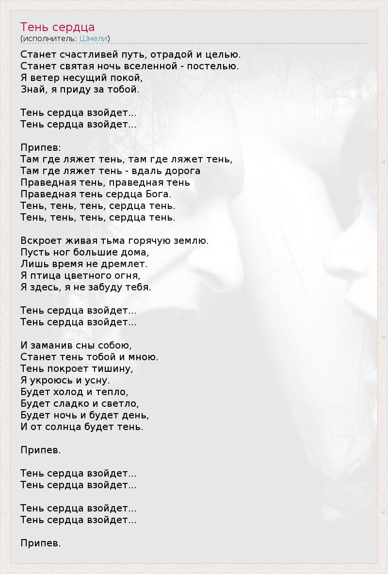 А как ты думаешь, о чем песня "Тень сердца" ?