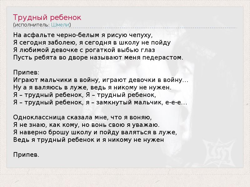 А как ты думаешь, о чем песня "Трудный ребенок" ?