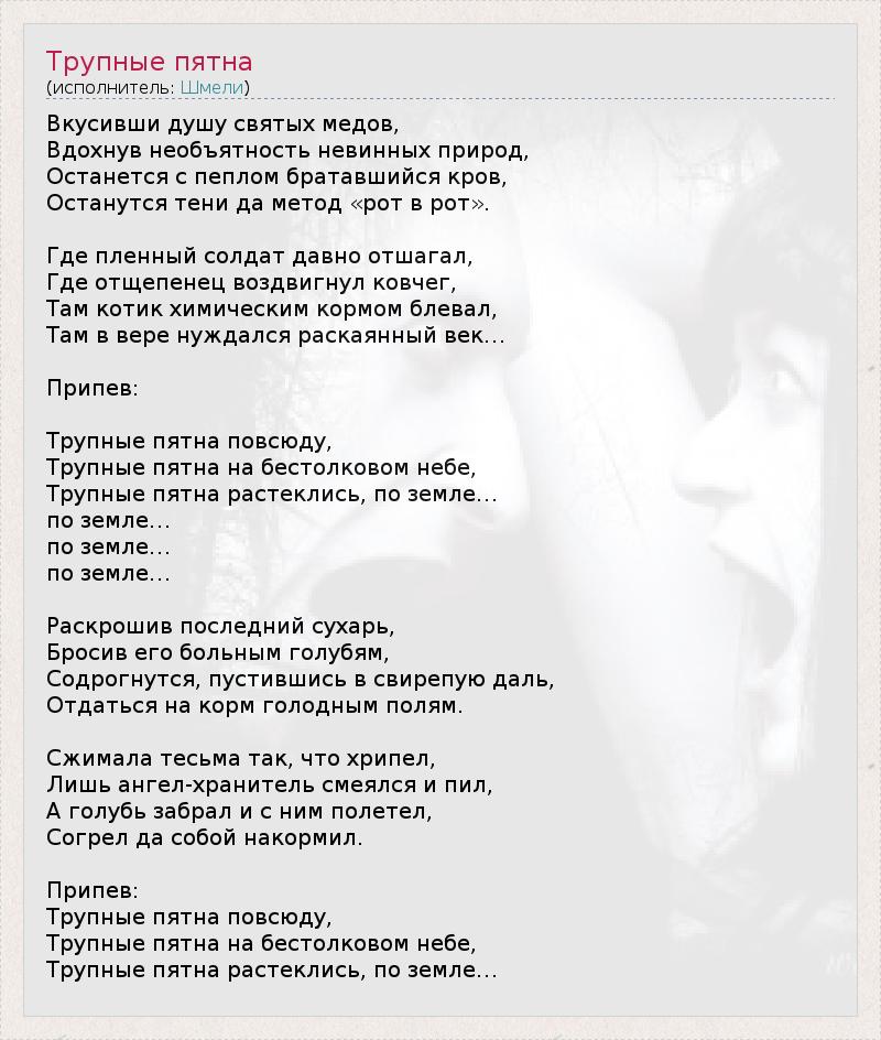 ГлавнаяИсполнителиШмелиТрупные пятна