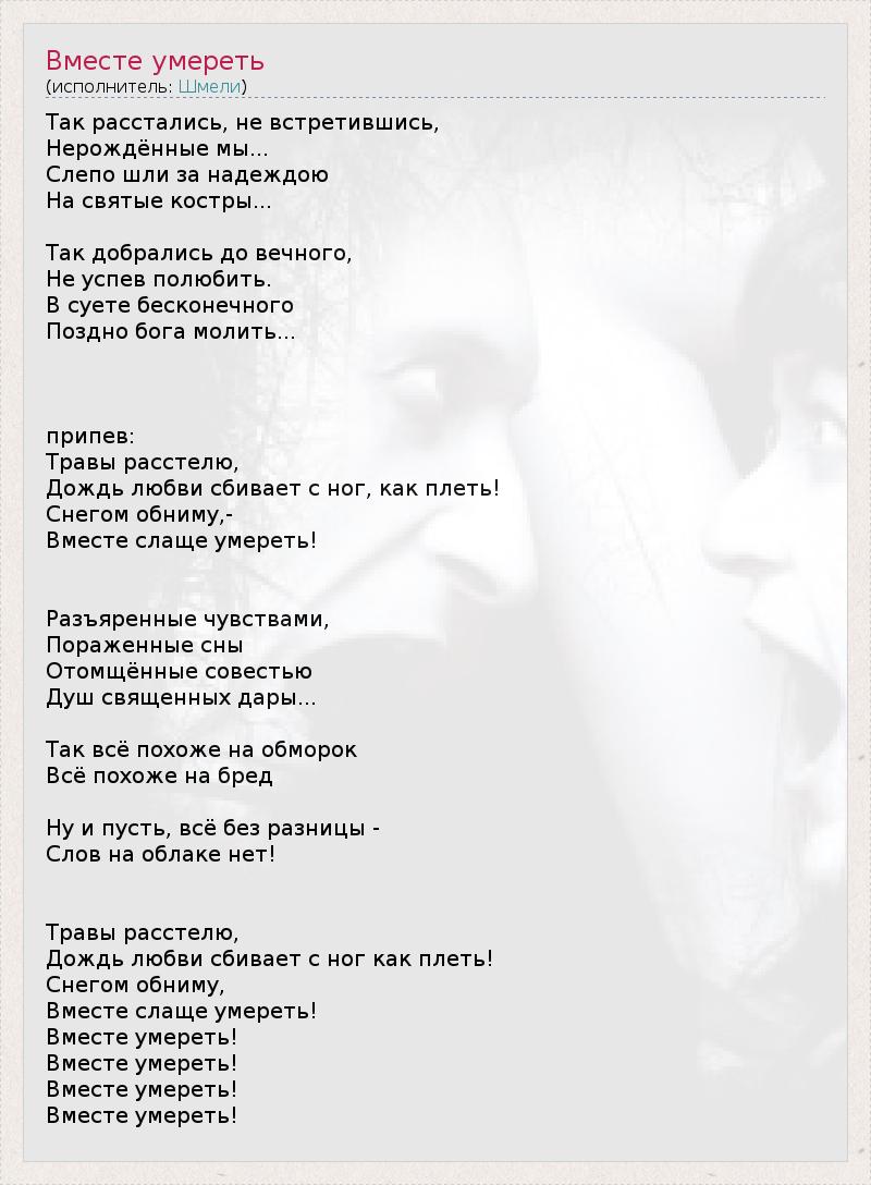 А как ты думаешь, о чем песня "Вместе умереть" ?