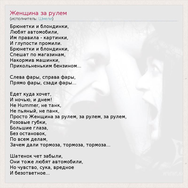ГлавнаяИсполнителиШмелиЖенщина за рулем