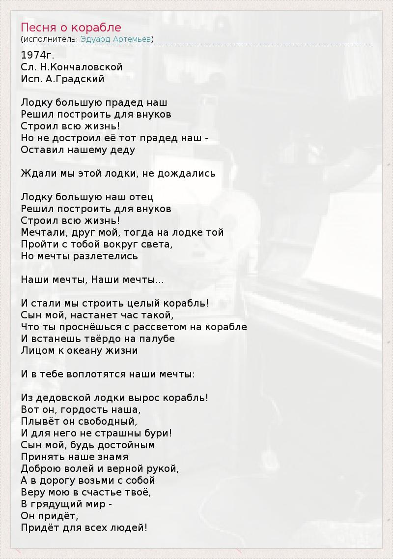 А как ты думаешь, о чем песня "Песня о корабле" ?