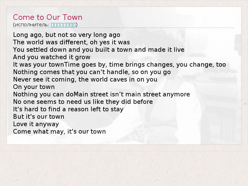 А как ты думаешь, о чем песня "Come to Our Town" ?