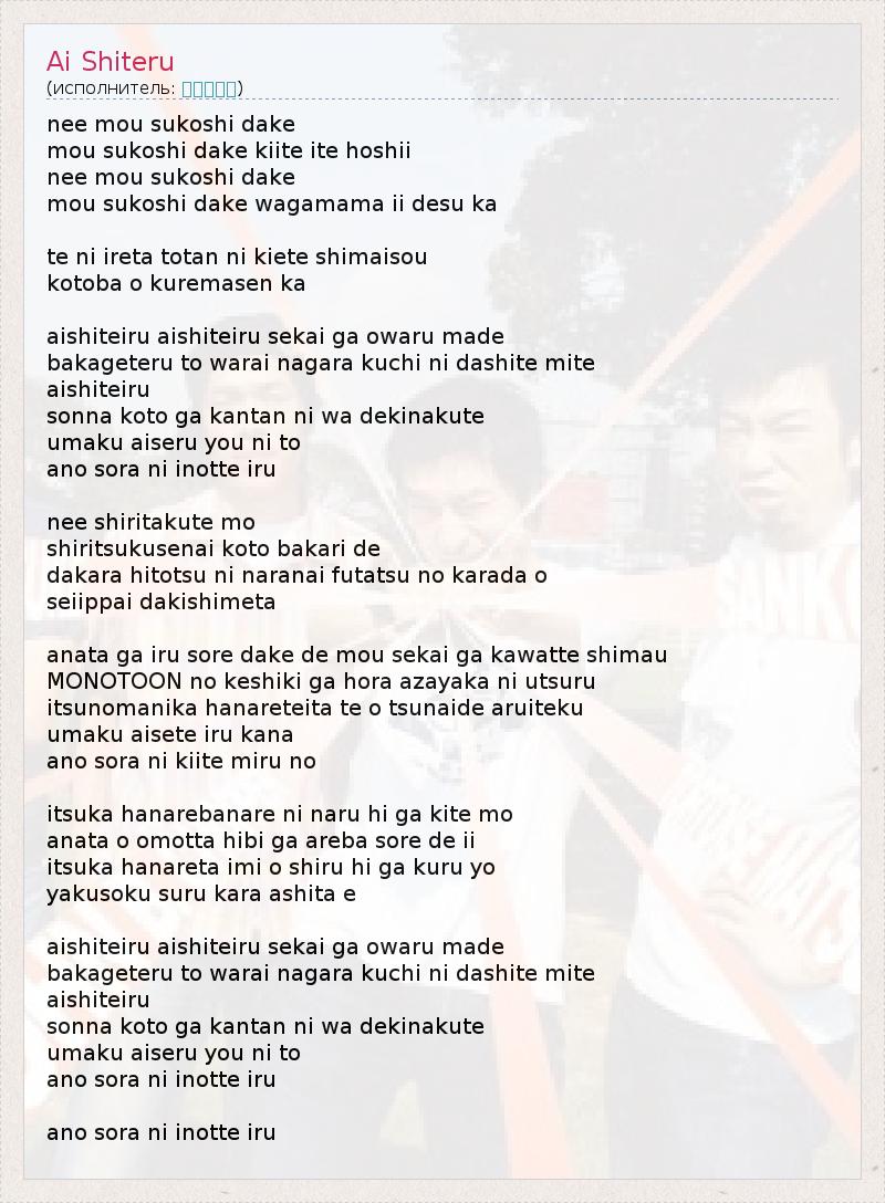 А как ты думаешь, о чем песня "Ai Shiteru" ?