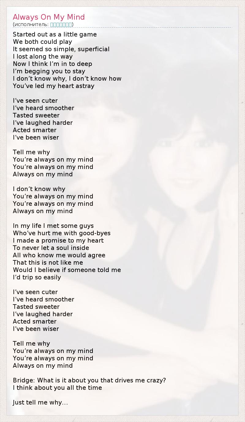 А как ты думаешь, о чем песня "Always On My Mind" ?