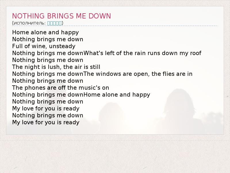 А как ты думаешь, о чем песня "NOTHING BRINGS ME DOWN" ?