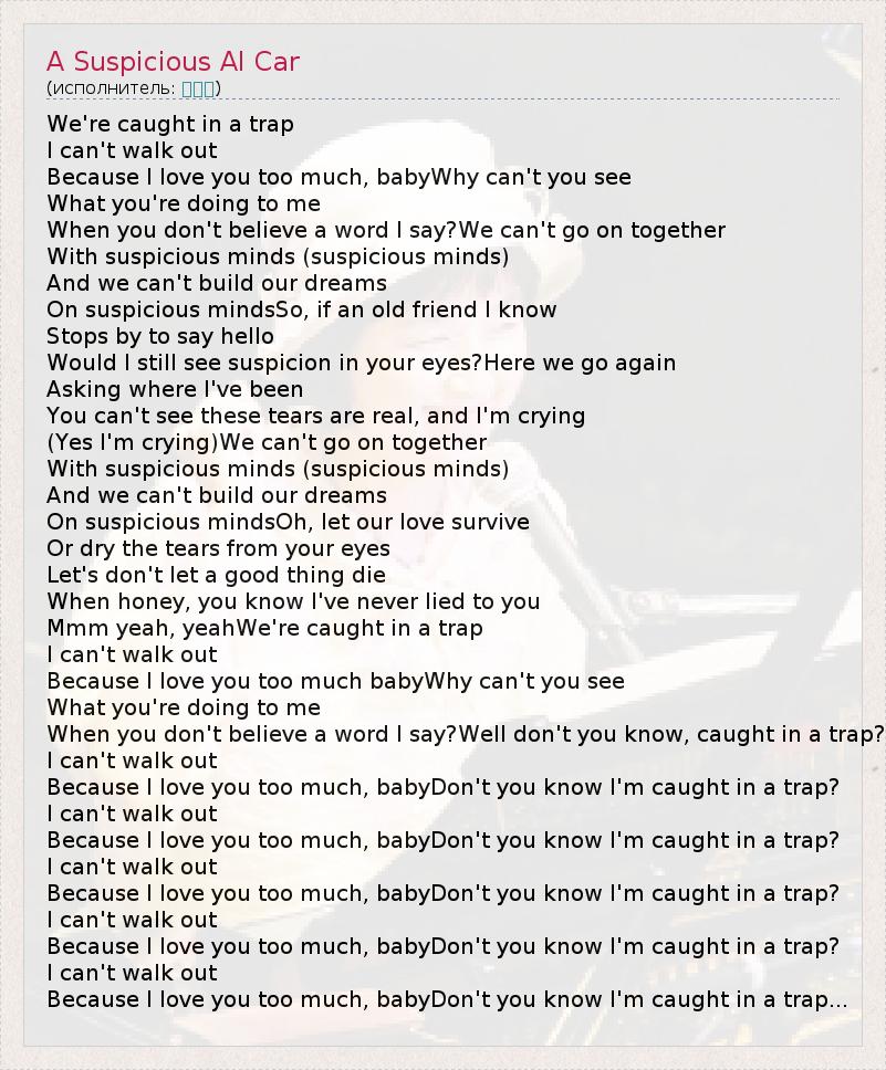 А как ты думаешь, о чем песня "A Suspicious AI Car" ?