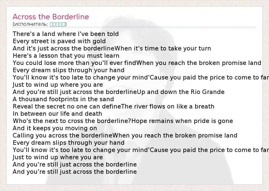 А как ты думаешь, о чем песня "Across the Borderline" ?