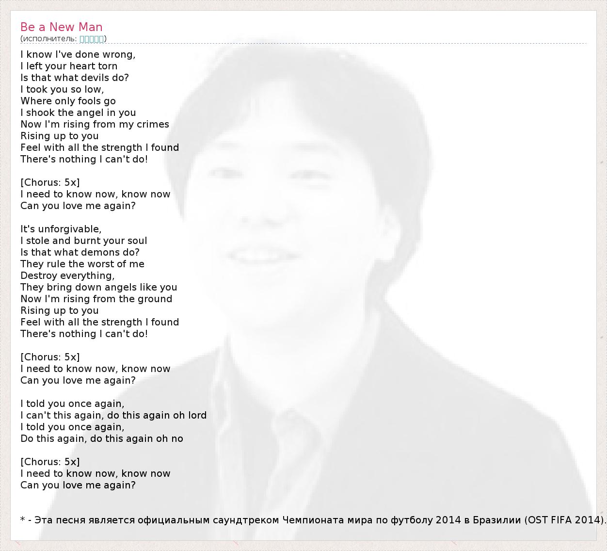 А как ты думаешь, о чем песня "Be a New Man" ?