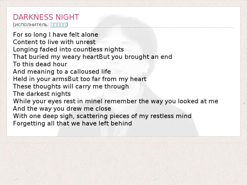 А как ты думаешь, о чем песня "DARKNESS NIGHT" ?