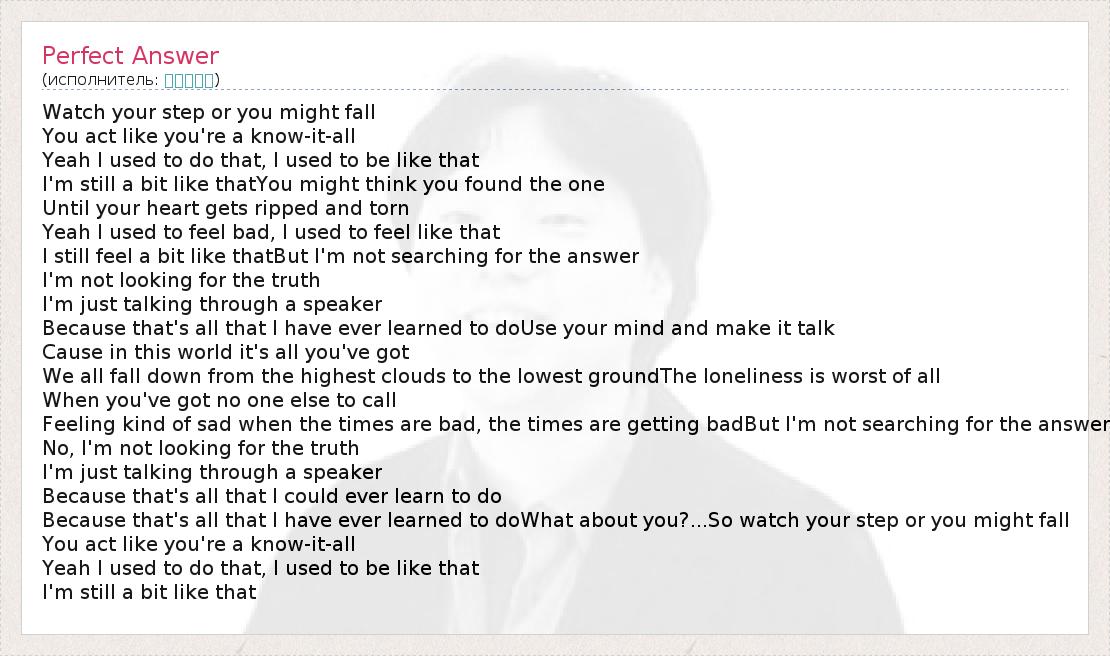 А как ты думаешь, о чем песня "Perfect Answer" ?