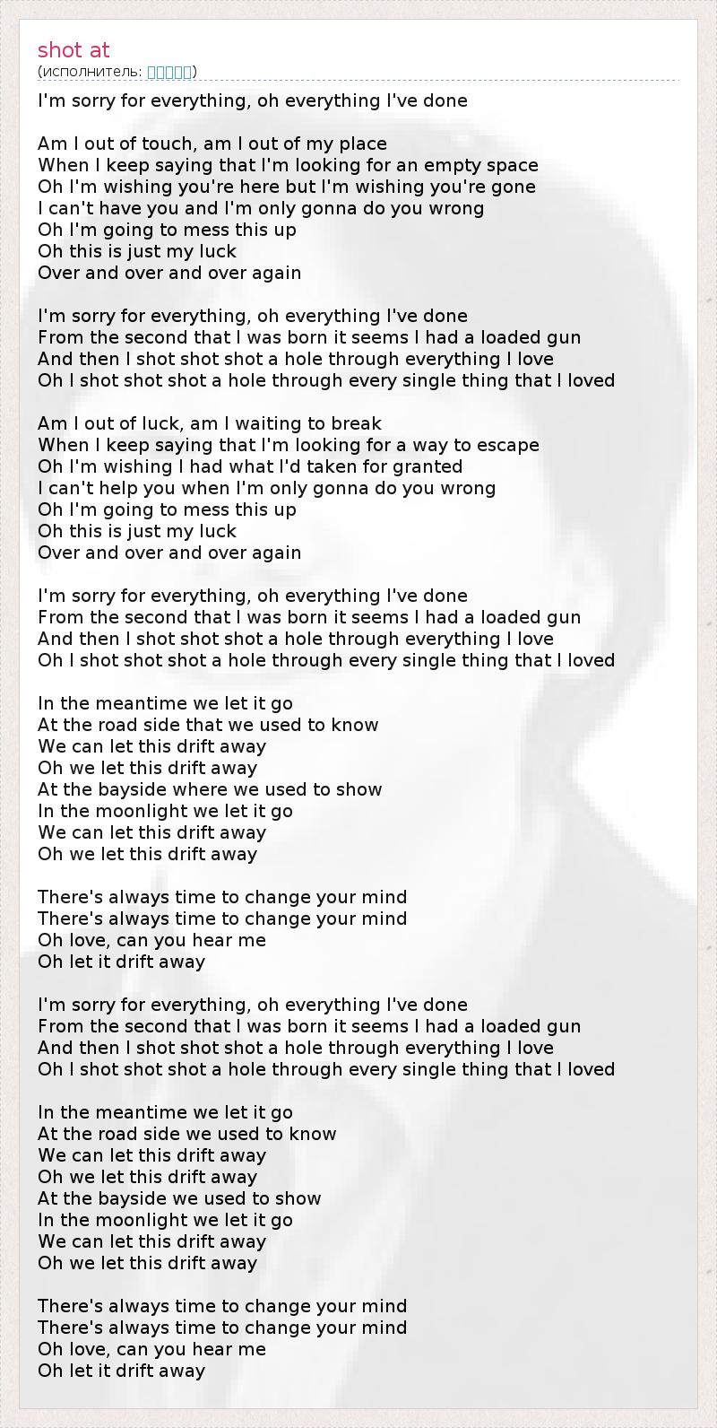 Oh I shot shot shot a hole through every single thing that I loved