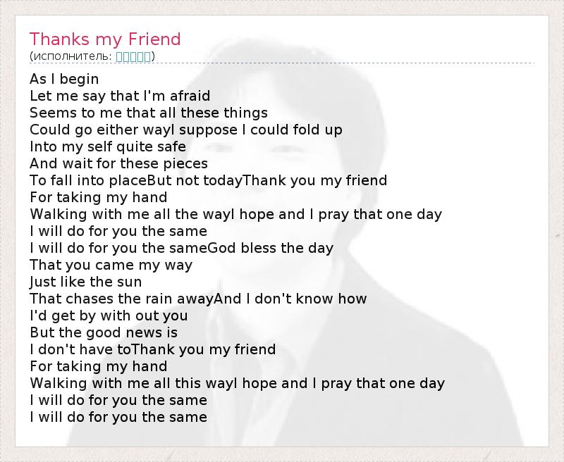 А как ты думаешь, о чем песня "Thanks my Friend" ?