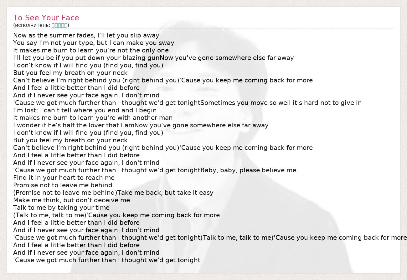 А как ты думаешь, о чем песня "To See Your Face" ?