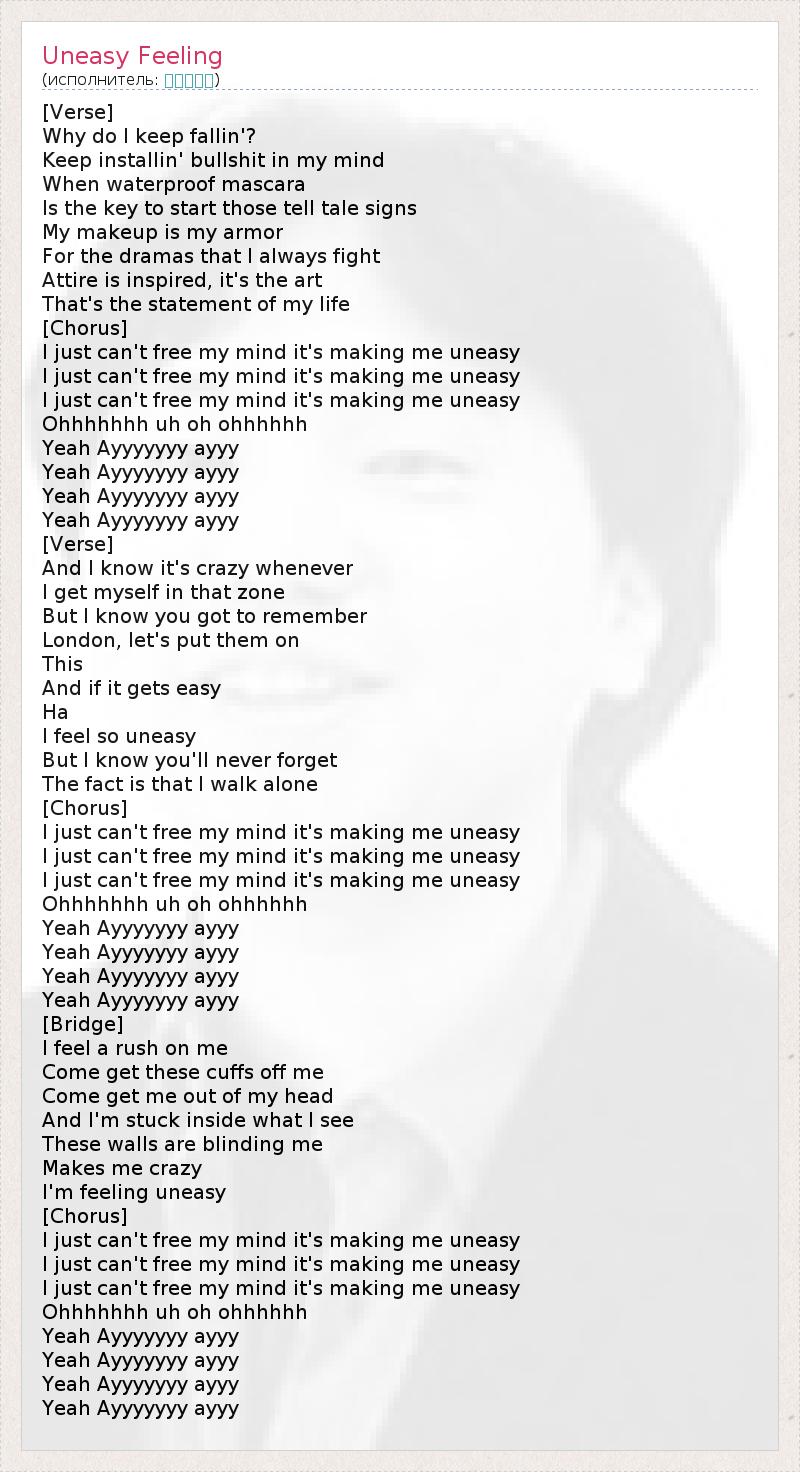 А как ты думаешь, о чем песня "Uneasy Feeling" ?